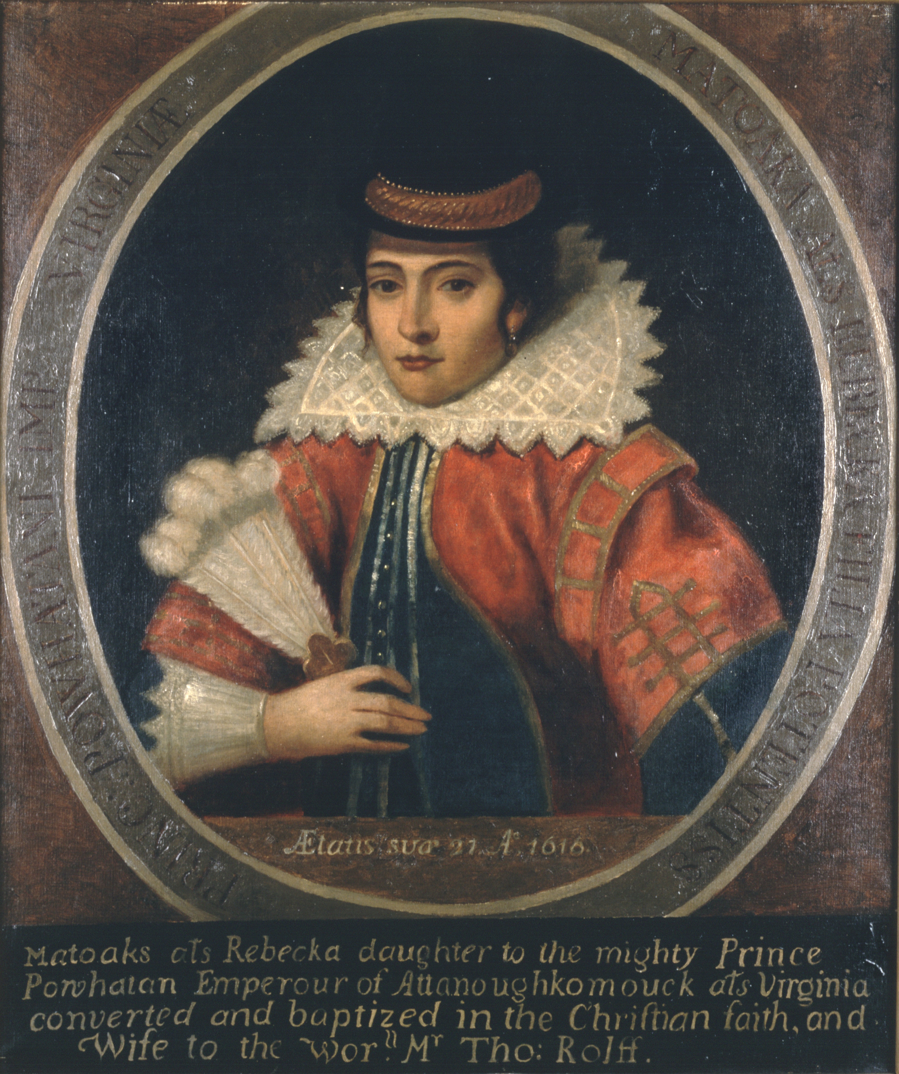 Citation: Pocahontas, ca. 1595-1617, oil on canvas portrait by William Ludwell Sheppard, copied from an earlier original, State Art Collection, Library of Virginia.