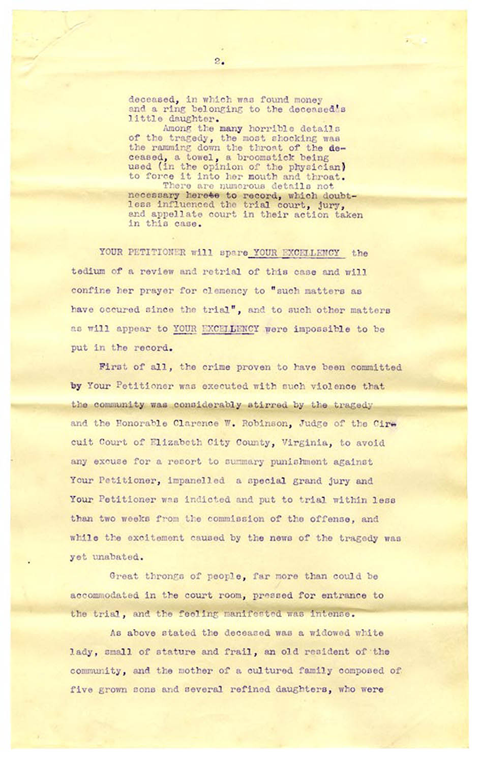 Clemency petition of Virginia Christian, submitted in her behalf by her attorneys George W.Fields and J. Thomas Newsome.