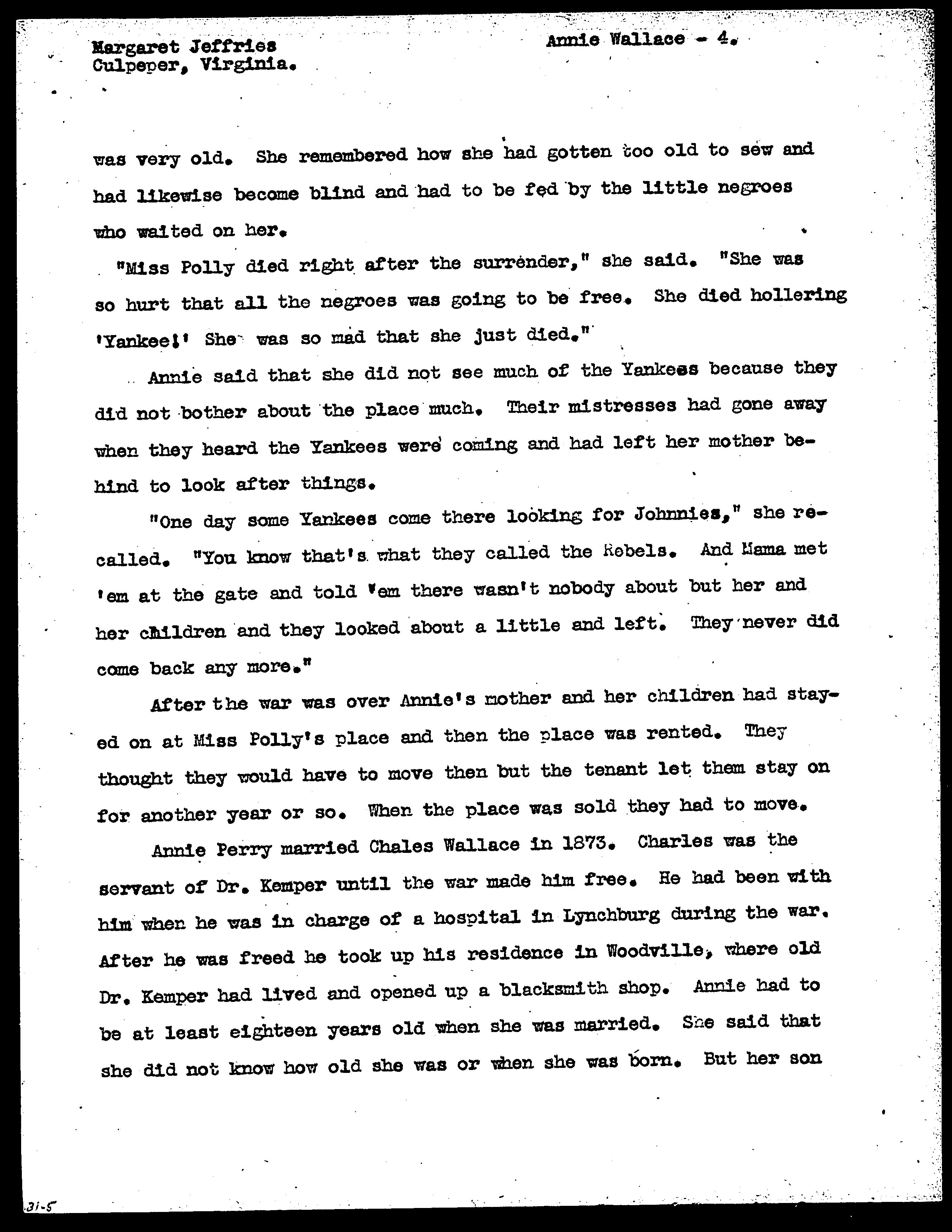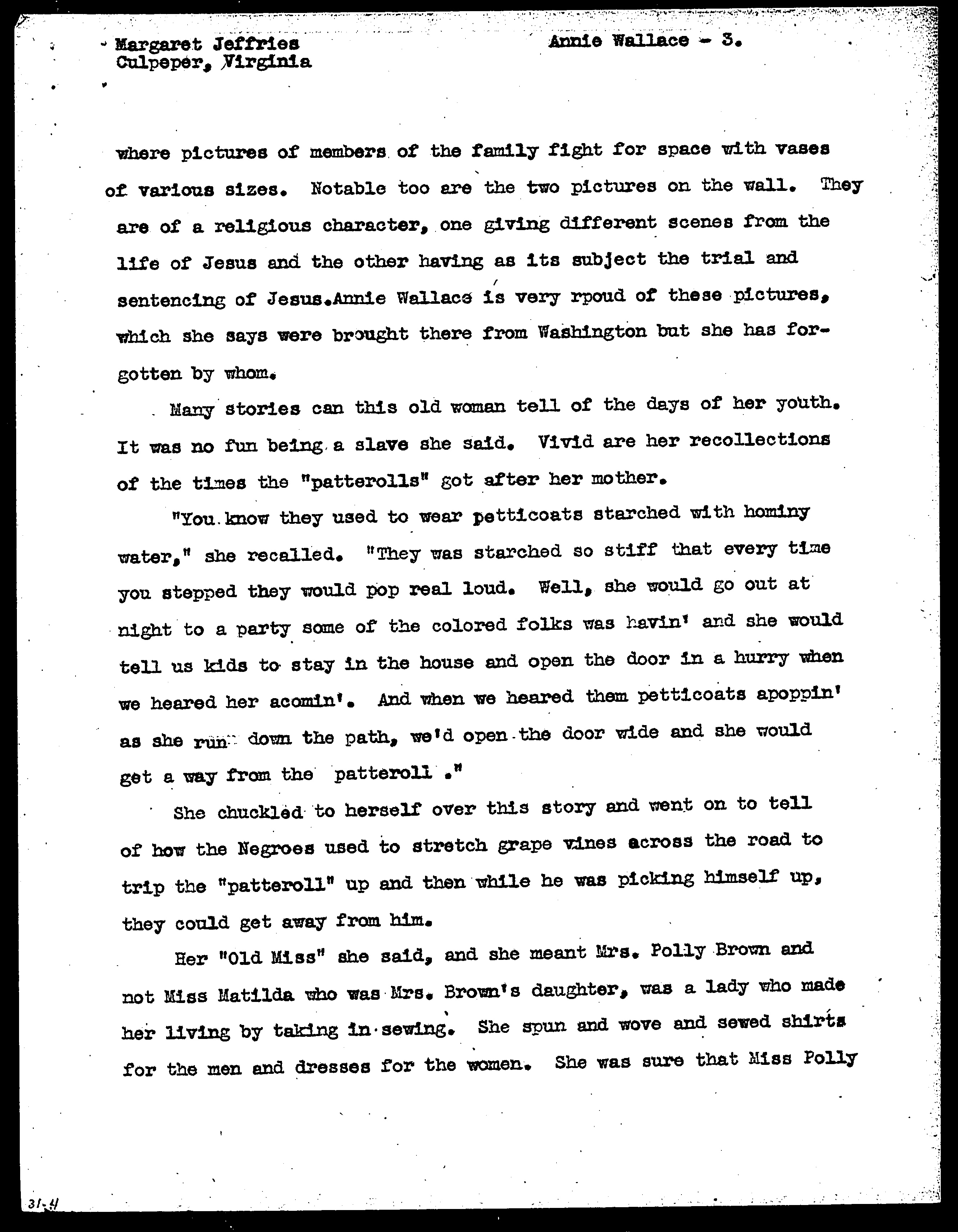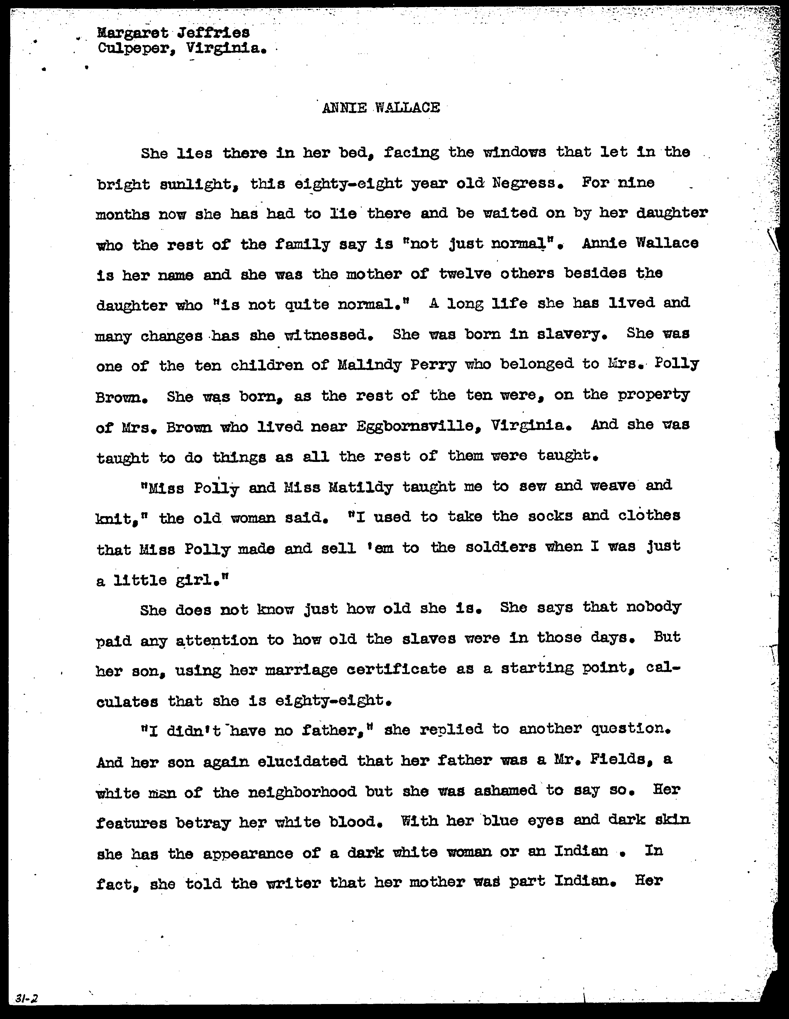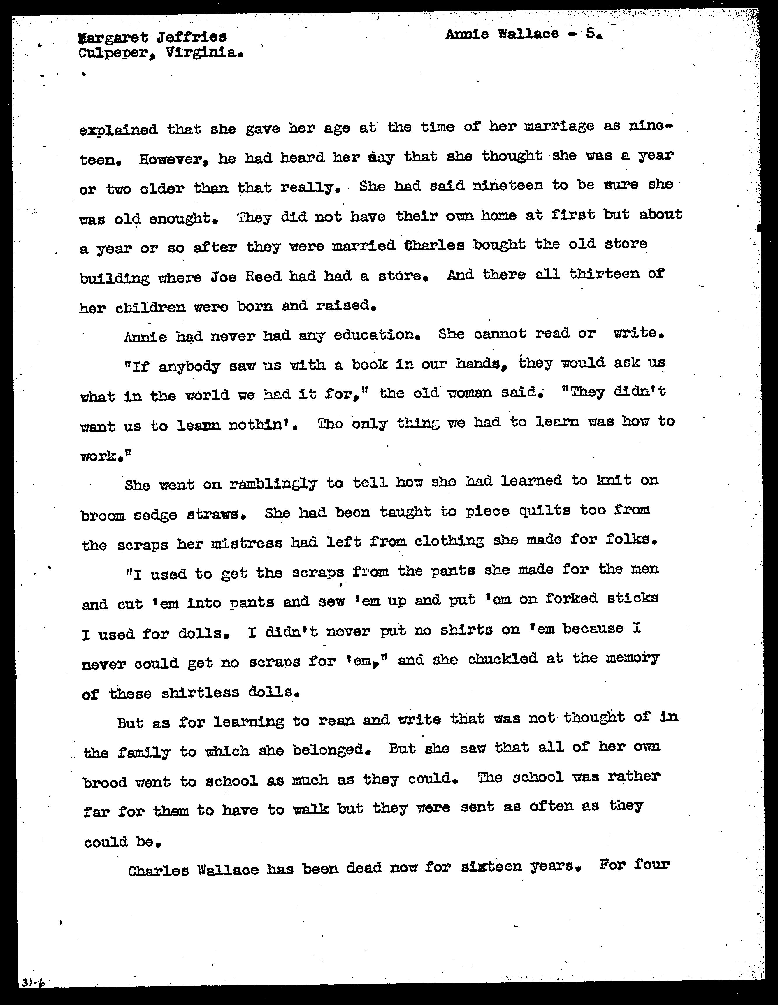 Annie Wallace Life History (WPA, Virginia Writers' Project)