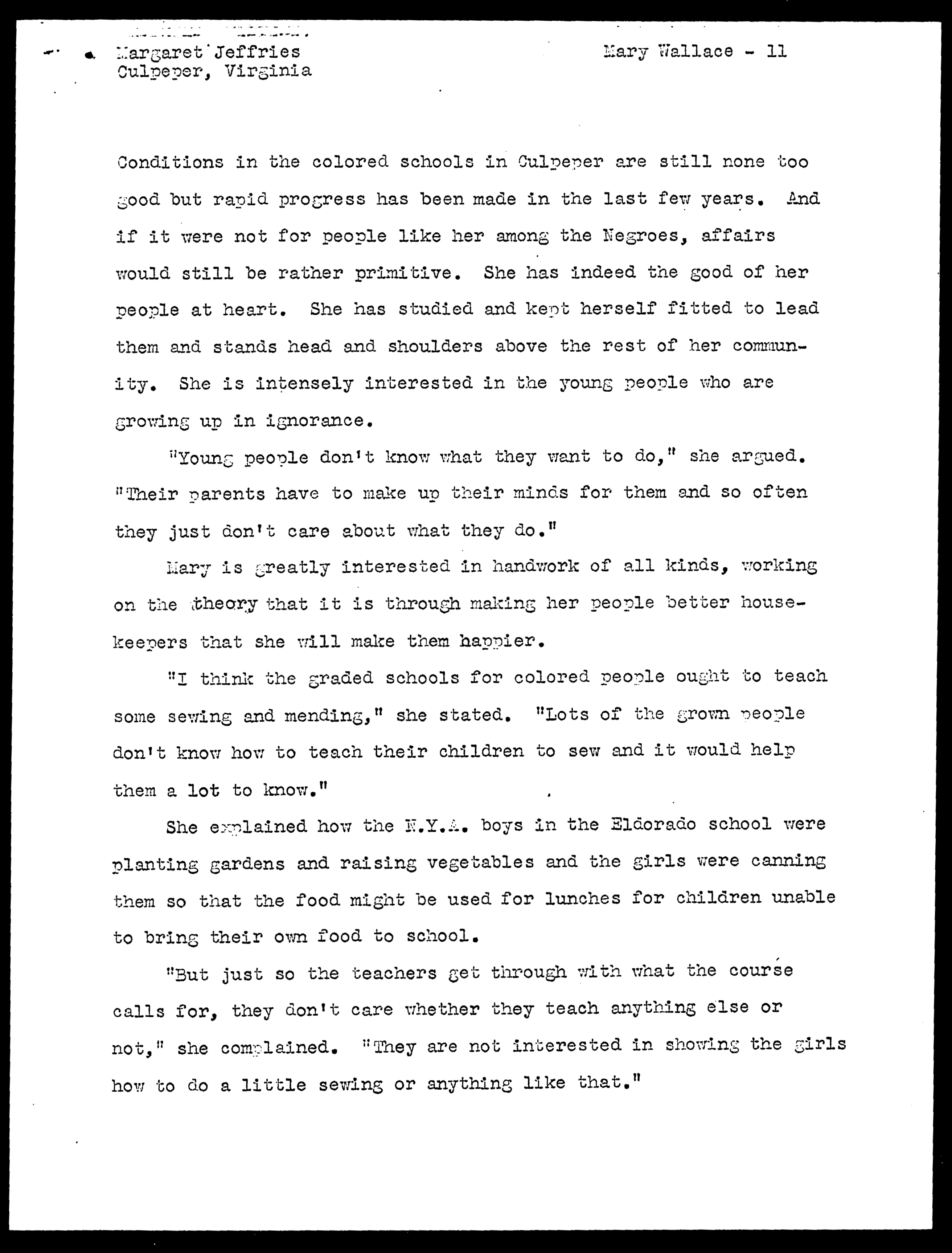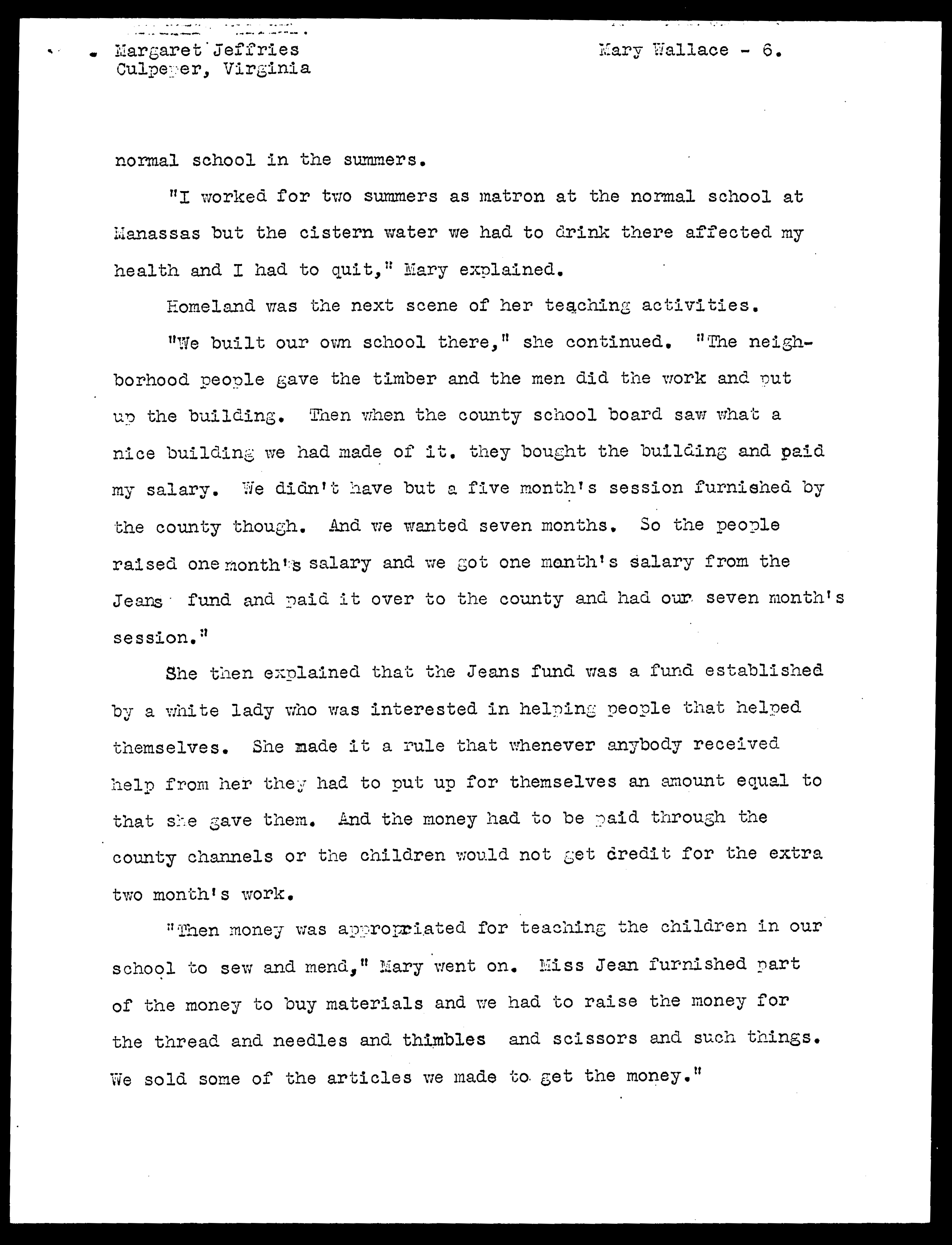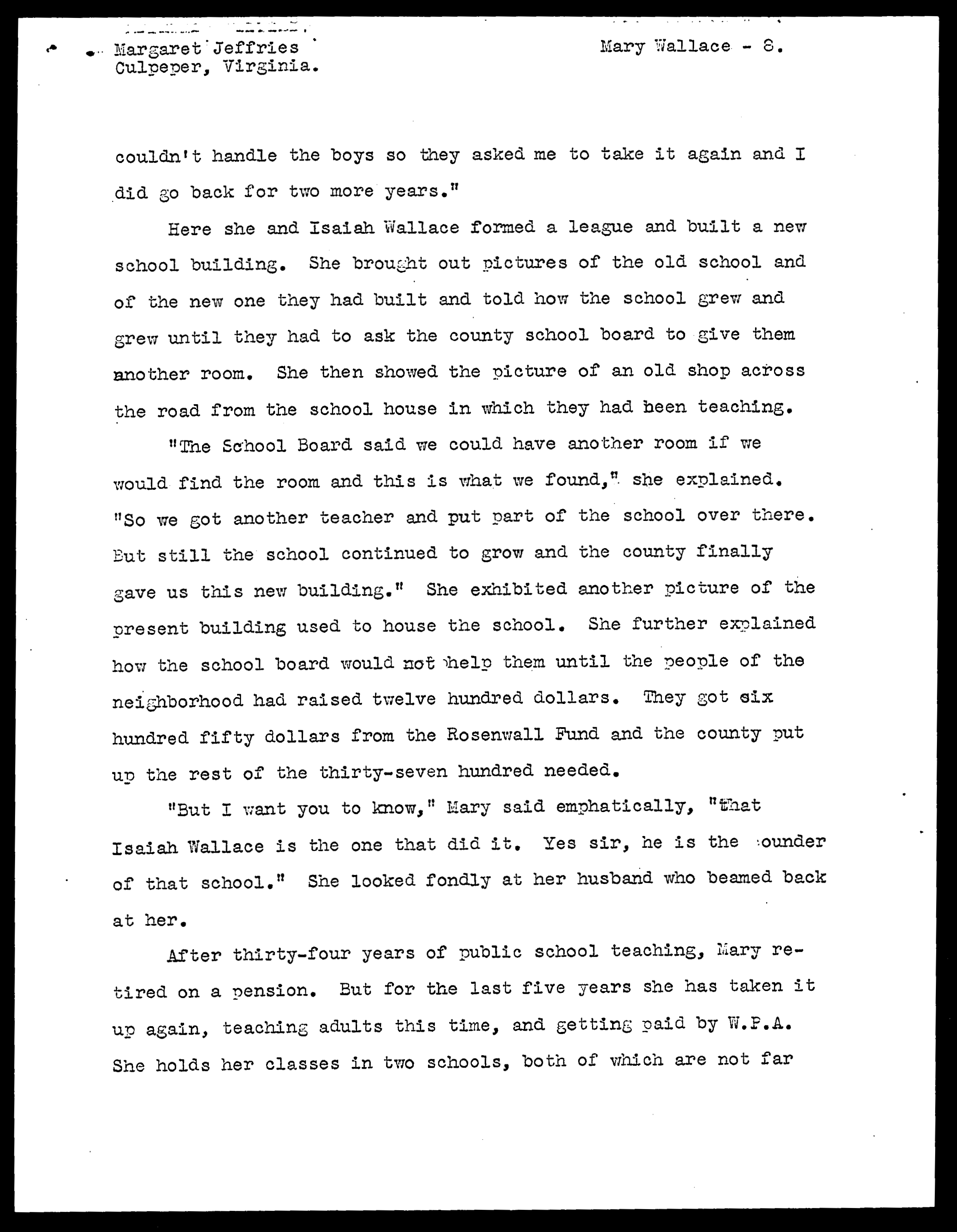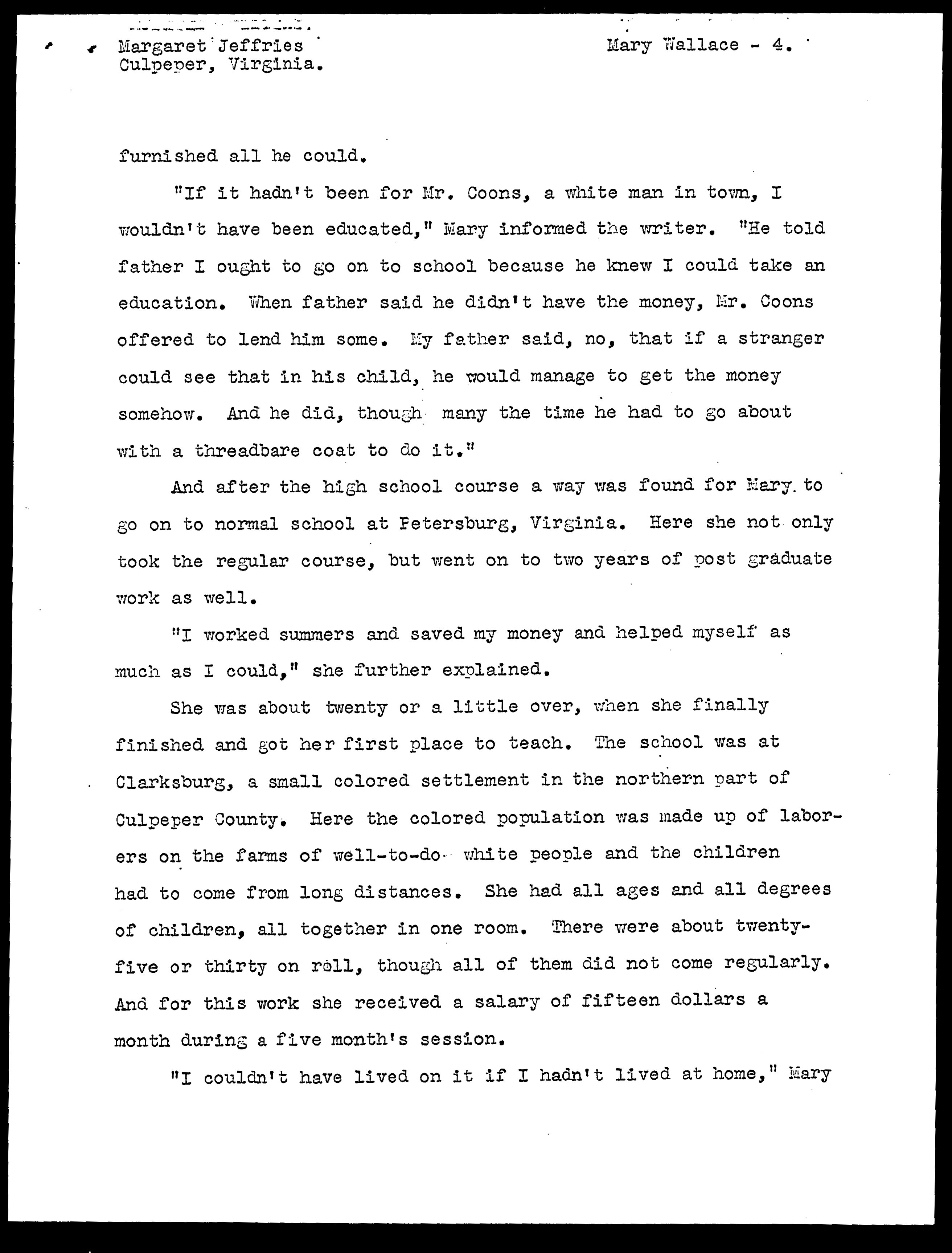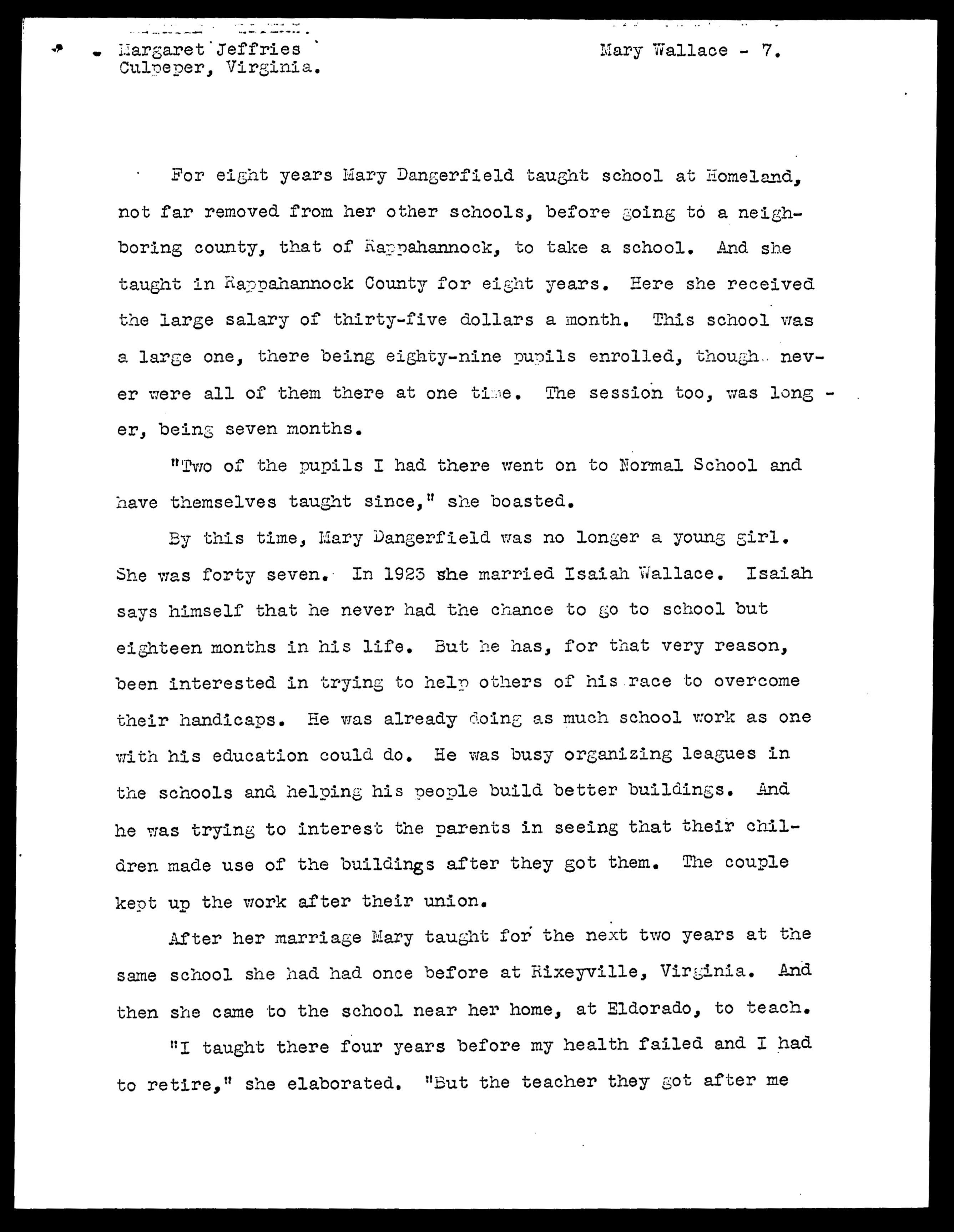 Mary Dangerfield Wallace Life History (WPA, Virginia Writers' Project)