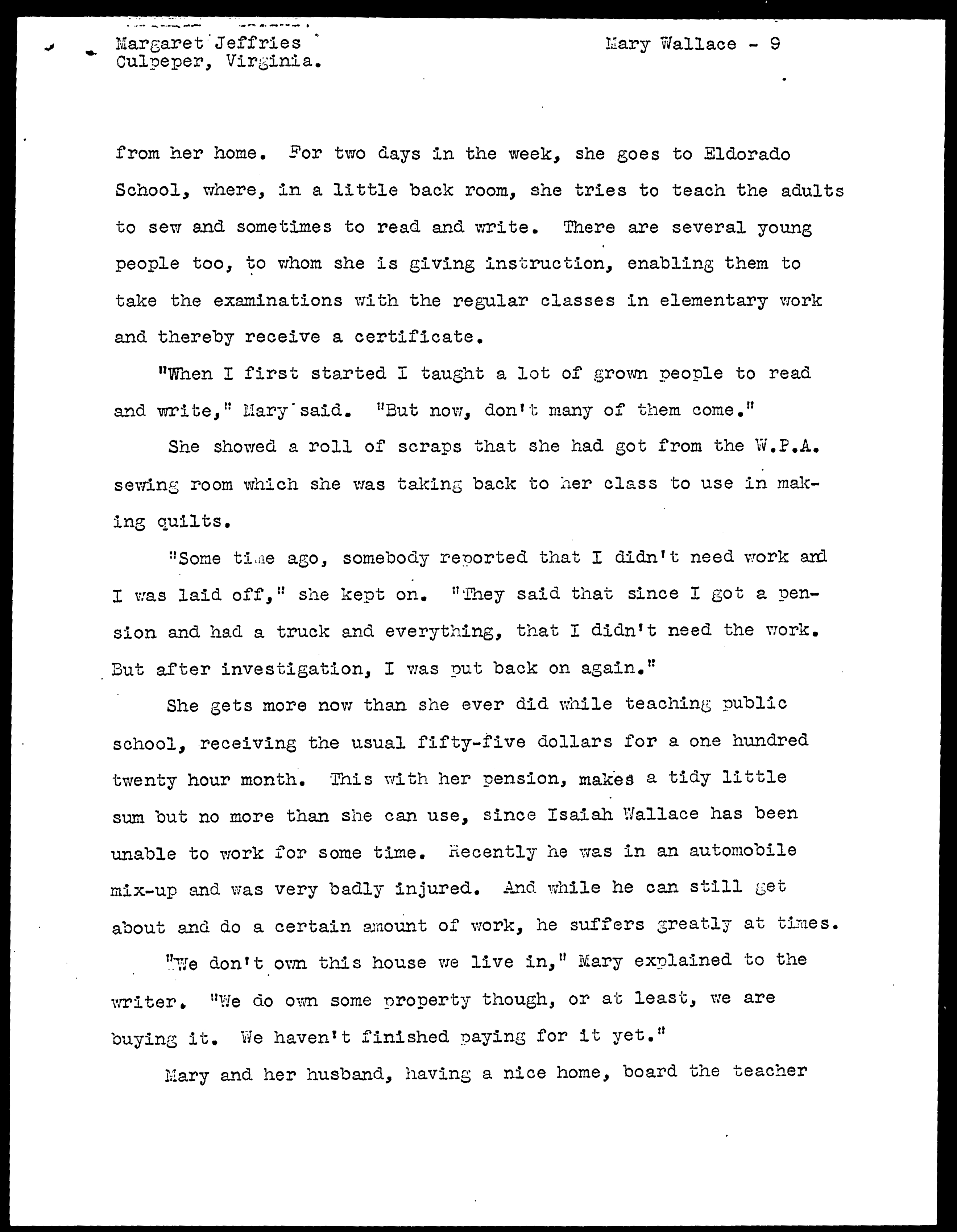 WPA interview with Mary Dangerfield Wallace.