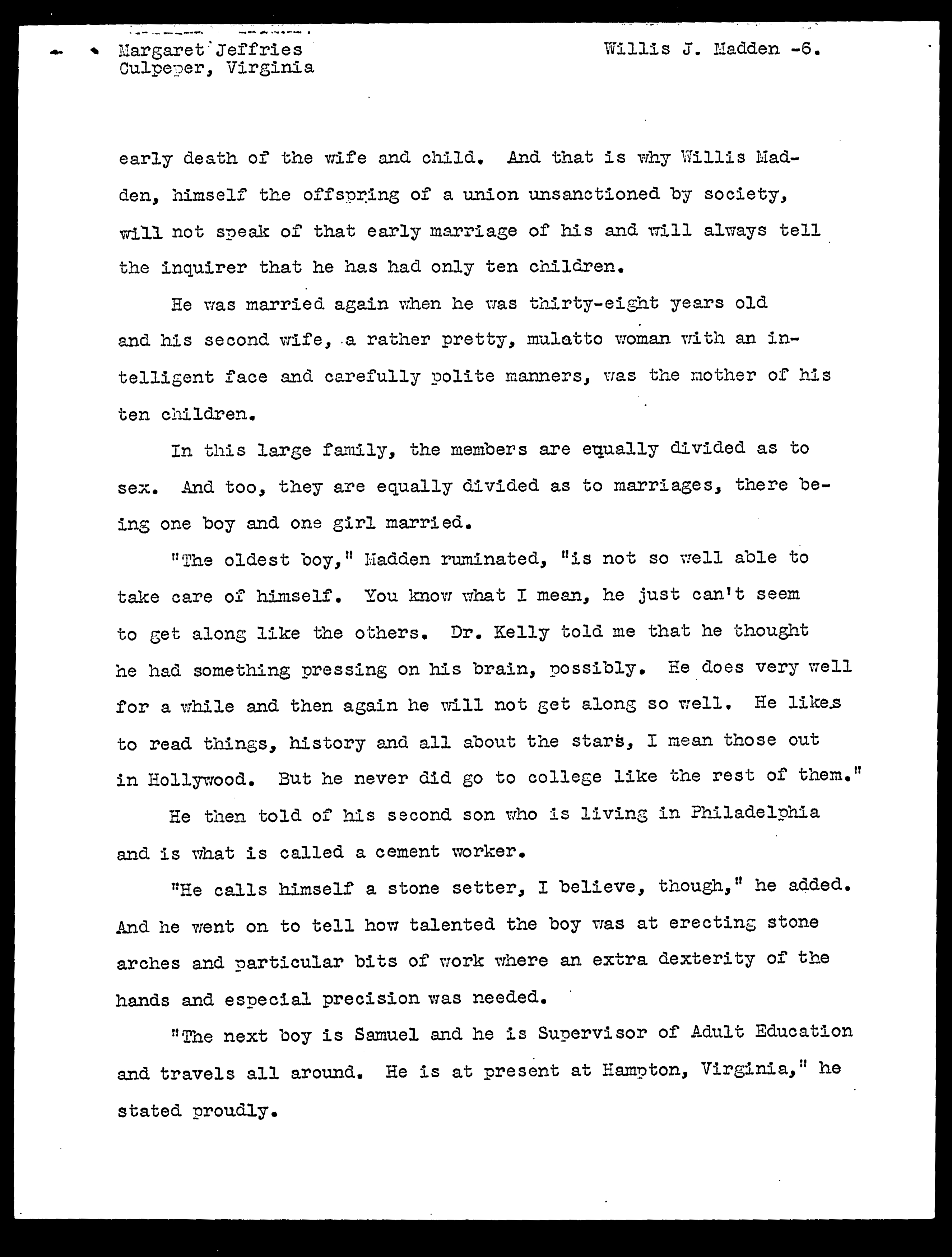 Willis J. Madden Life History (WPA, Virginia Writers' Project)