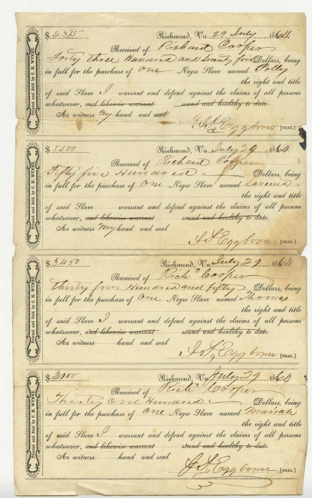 Silas Omohundro. Business and Estate Records, 1842-1882. Accession 29642, Business Records Collection.