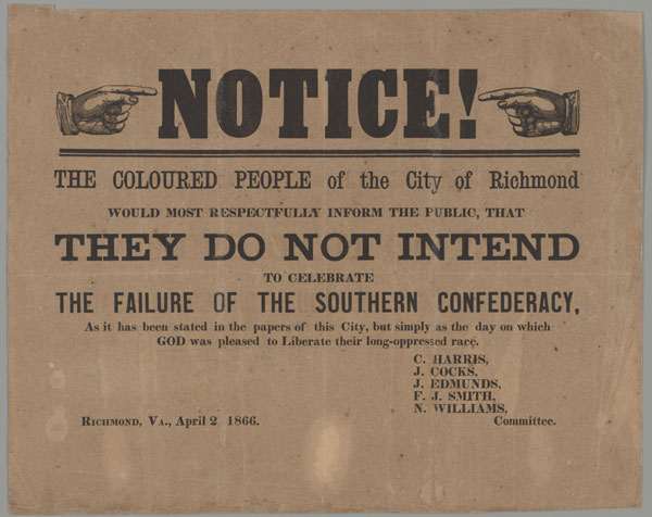 Notice! The coloured people of the city of Richmond would most respectfully inform the public, that they do not intend to celebrate the failure of the Southern
