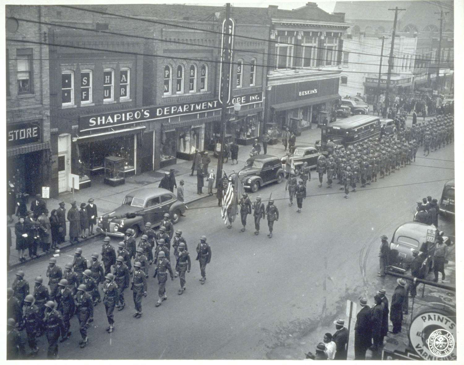 Sections of the 3166th Quartermaster Service Company, Color Guard and 3167th Quartermaster Service Company of Camp Hill, march down Jefferson Avenue, in Newport News, during a parade marking the 81st Anniversary of the Emancipation Proclamation. Shipyard workers' floats, Camp Hill Quartermaster Service Companies, and the Camp Hill Band also participated in the parade.