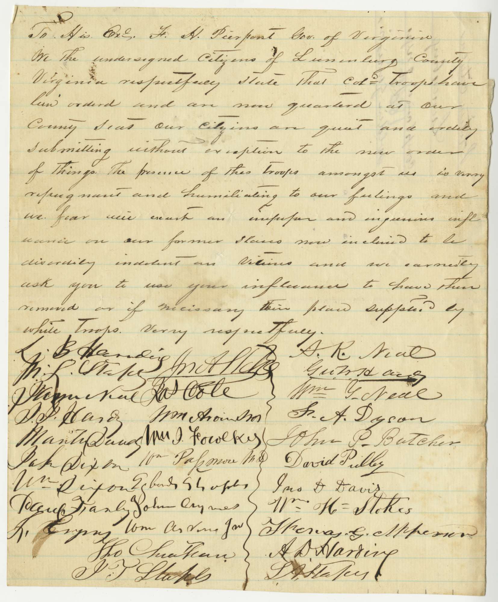 Petition of Residents of Lunenburg County to Governor Francis H. Pierpont