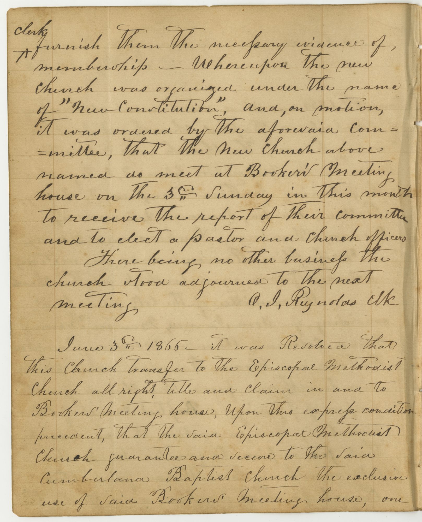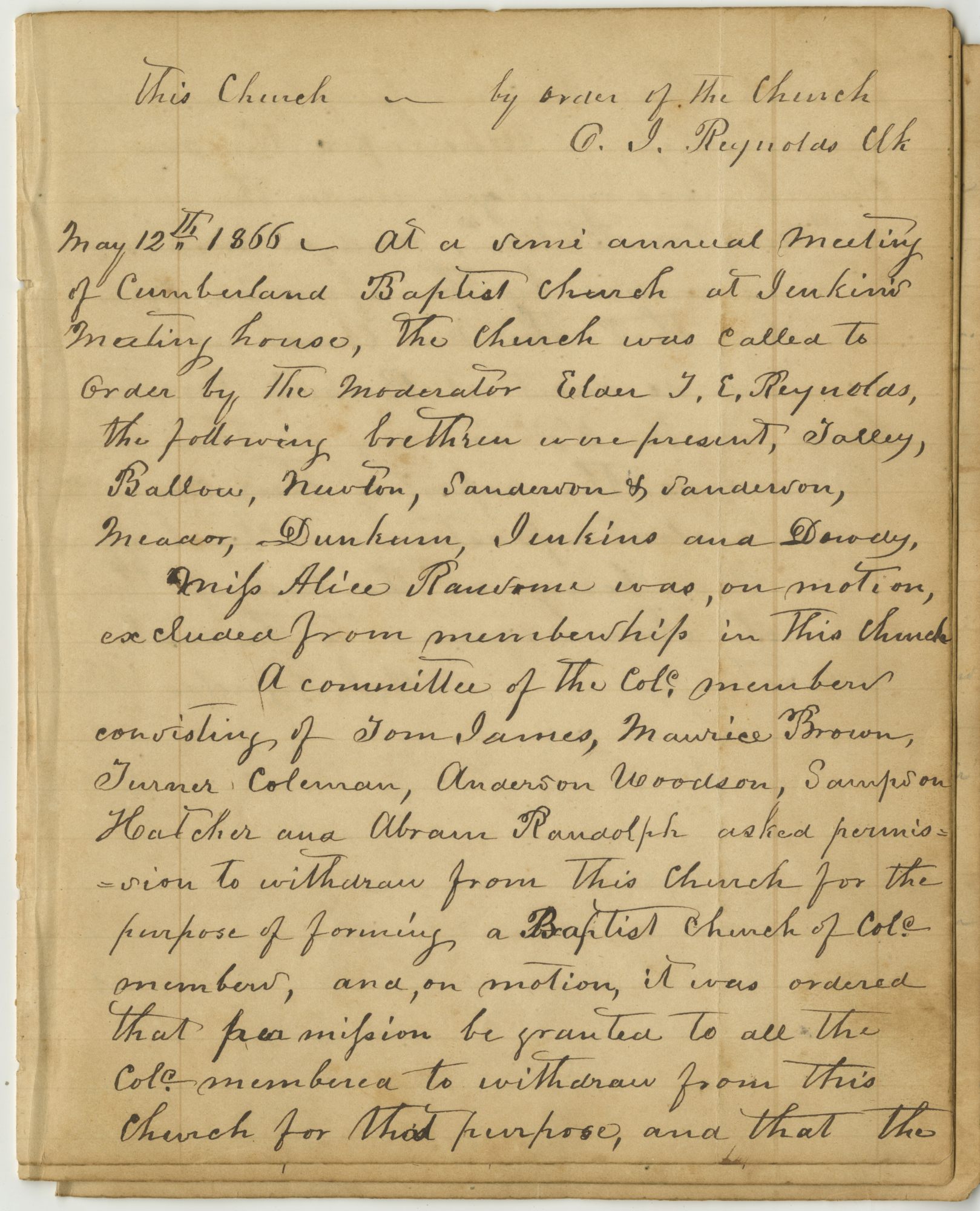 Cumberland Baptist Church, May 12, 1866, Minutes