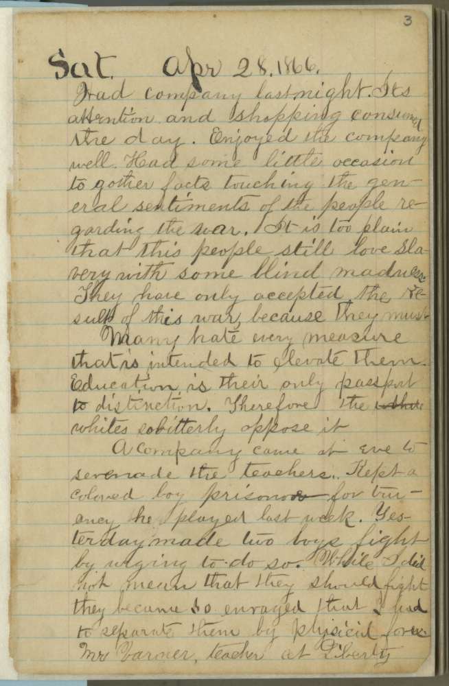 Jacob E. Yoder Diaries, April 28, 1866 entry