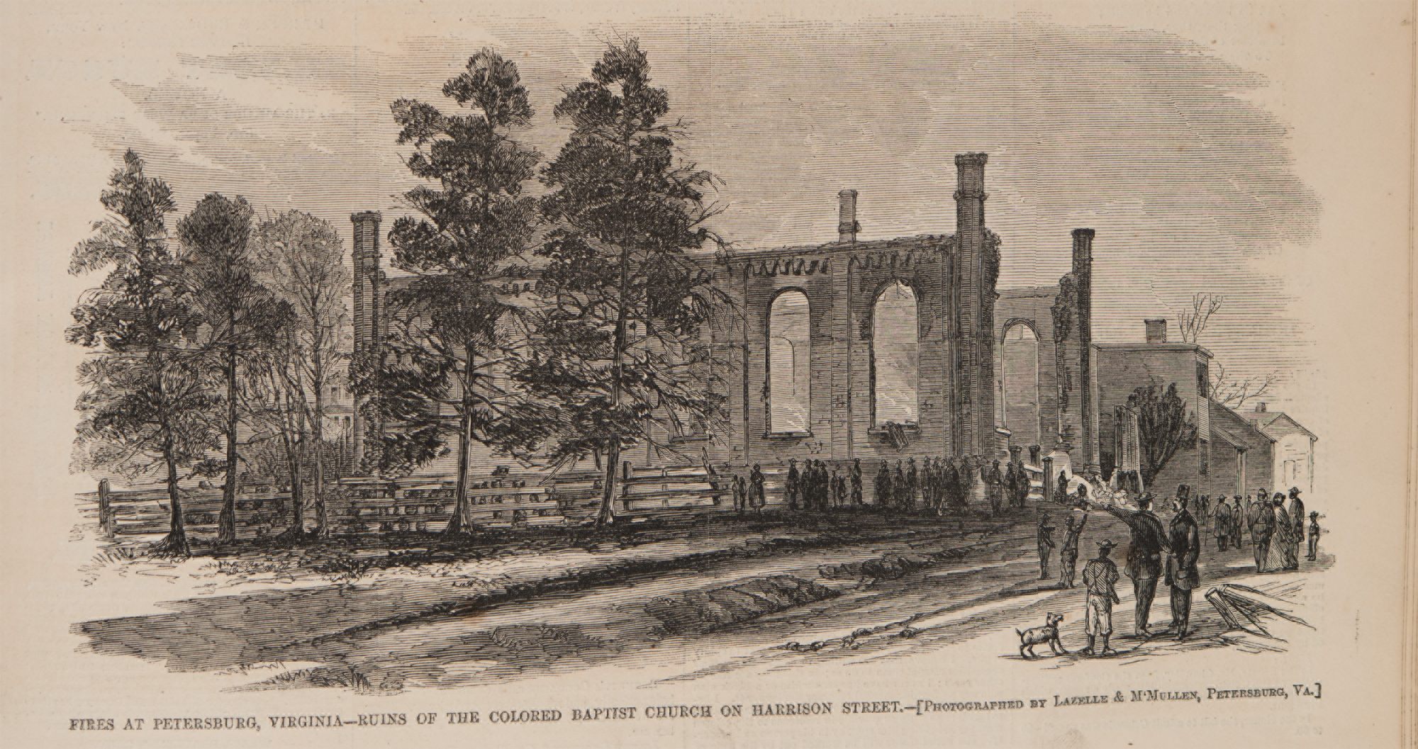 Early in the morning of May 1, 1866, fires damaged several African American churches in Petersburg, including the Sunday school building adjacent to one of them. Many white Virginians feared that the schools would become hotbeds of radical Republicanism.