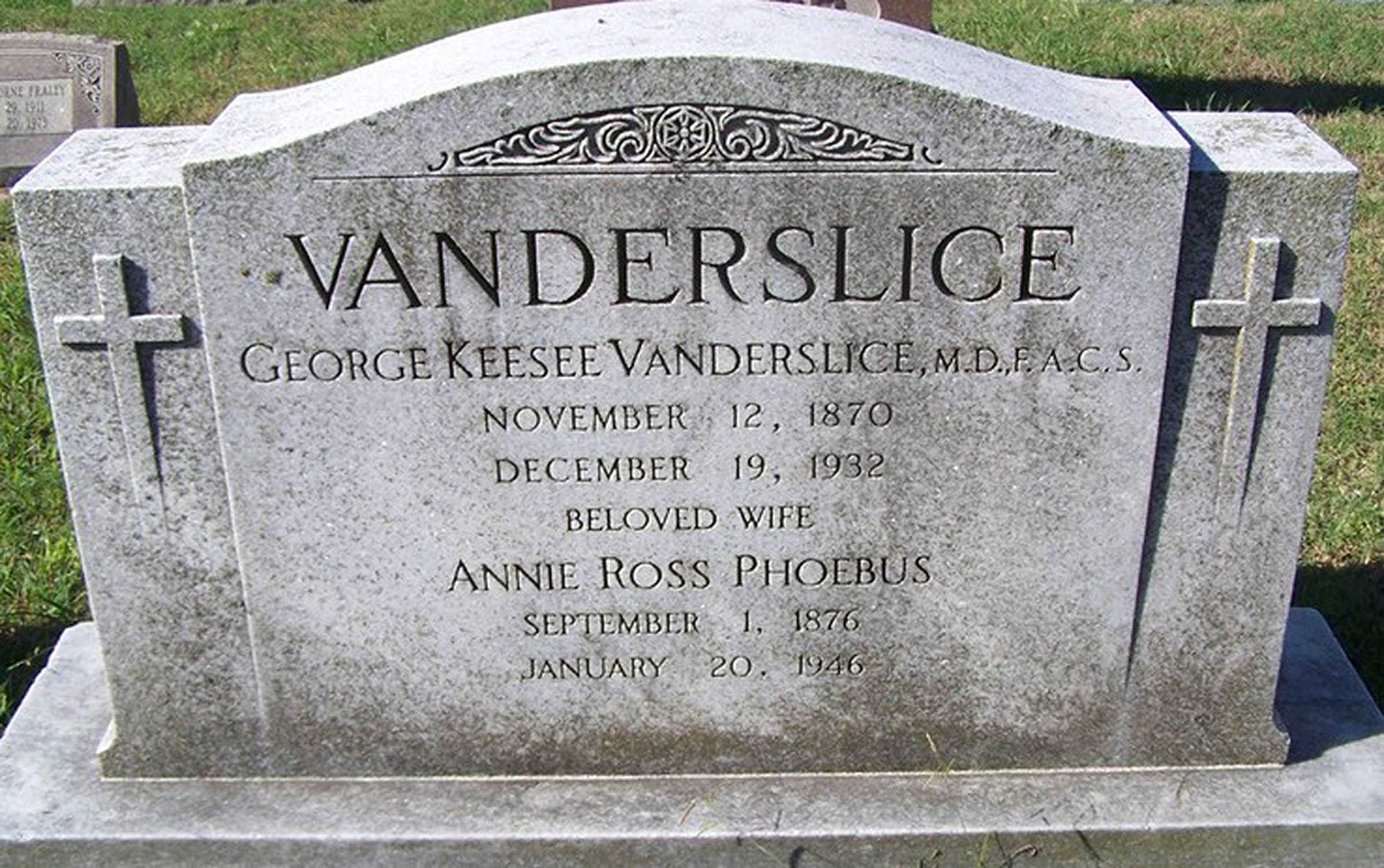 Gravestone of George Keesee Vanderslice, (1870-1932), St. John's Church Cemetery, Hampton, Virginia.