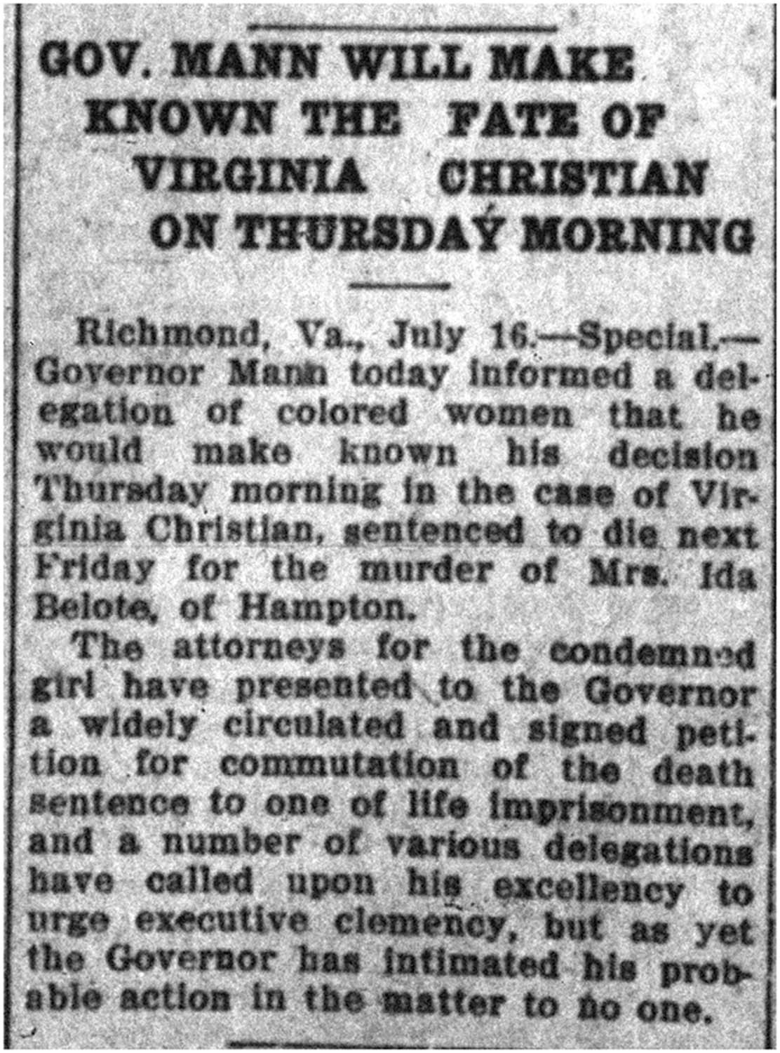 Gov. Mann Will Make Known the Fate of Virginia Christian on Thursday Morning