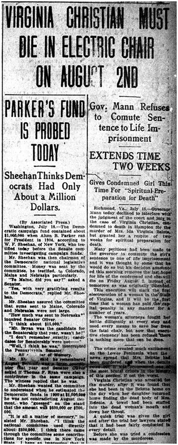 Virginia Christian Must Die in Electric Chair on August 2nd