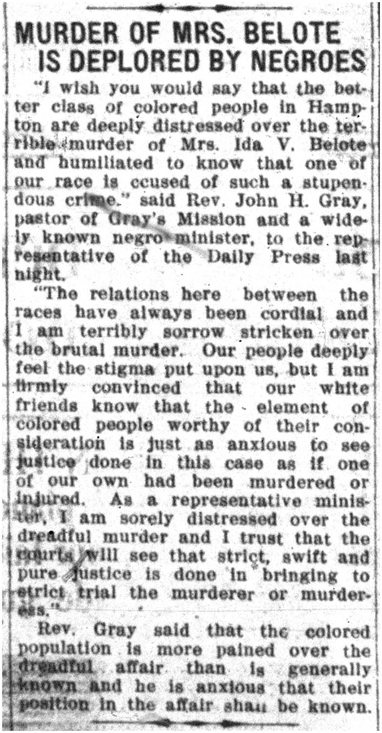 Murder of Mrs. Belote is Deplored by Negroes