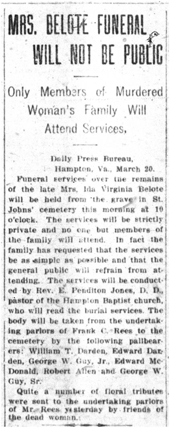 Mrs. Belote Funeral will not be Public