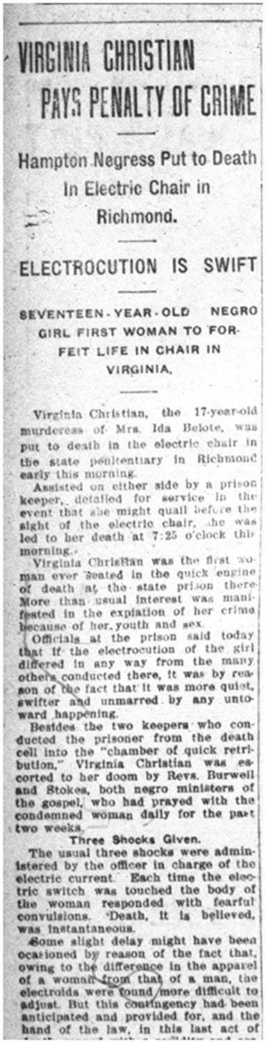 Virginia Christian Pays Penalty of Crime